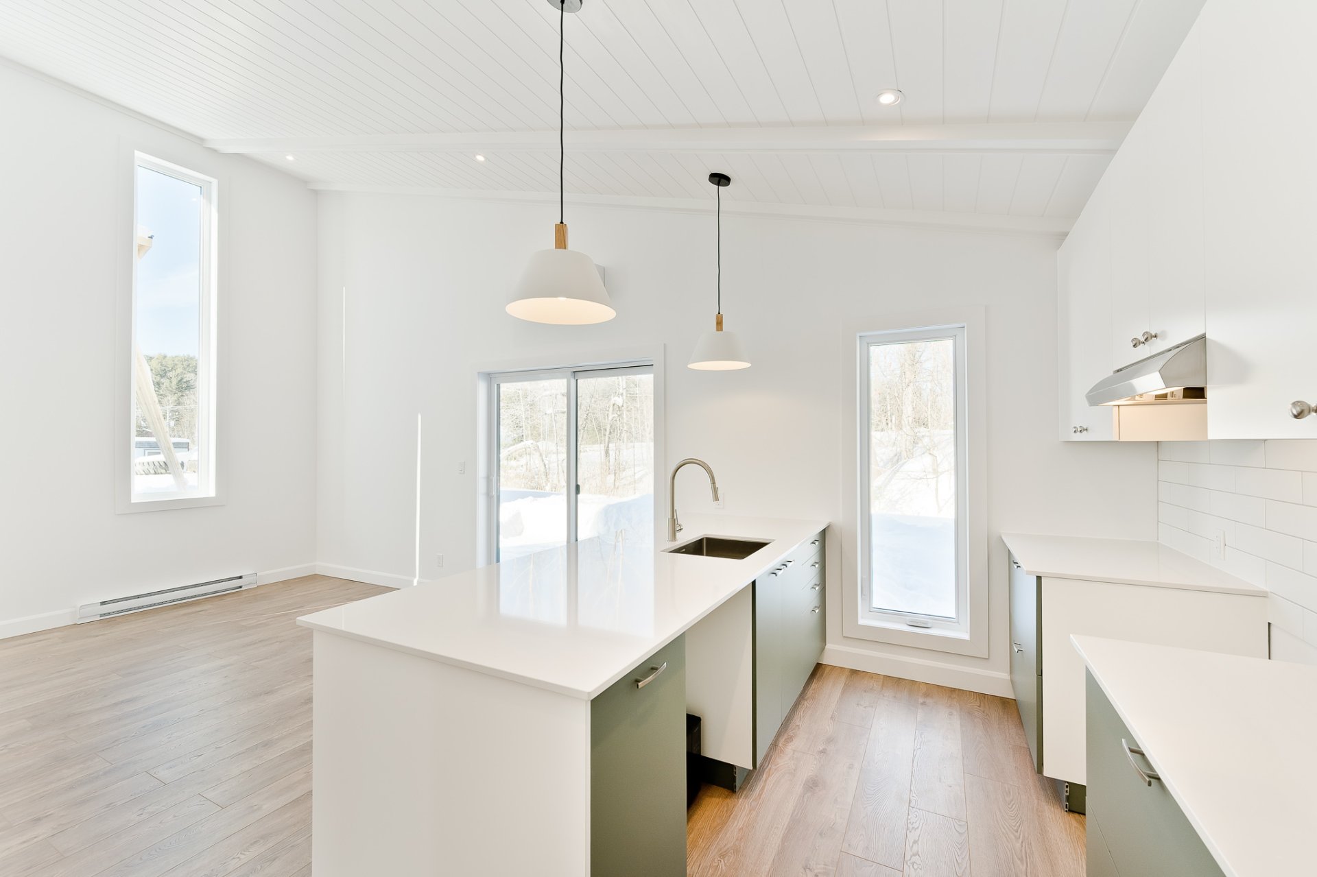 Logez-vous pour le prix d'un loyer! Splendide demeure de type mini-maison, dans un quartier idéal à proximité des frontières et non loin des services. De construction 2026 avec garantie GCR, cette perle vous accueille avec un magnifique plafond cathédrale surplombant le salon, la salle à manger et la cuisine. Il continue également dans les 2 chambres à coucher. Profiter aussi d'une superbe salle de bains avec douche vitrée. Vous apprécierez le décor actuel, l'environnement en harmonie avec la nature et le minimum d'entretien. À voir rapidement!