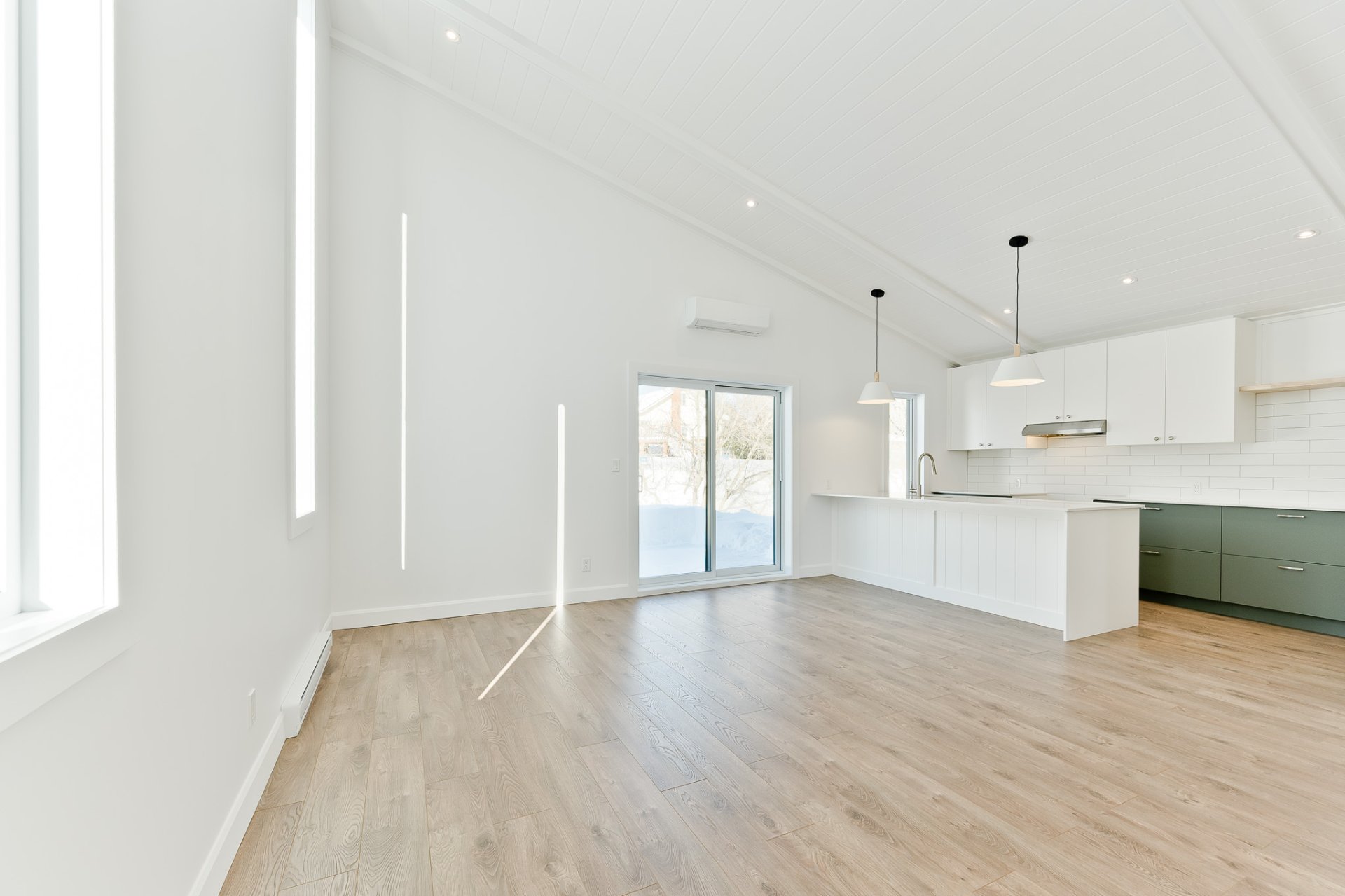 salon, la salle à manger et la cuisine se partagent